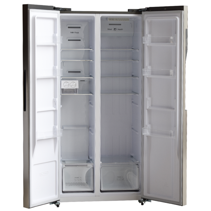 One of the standout features of the Ramtons 430 LITERS SIDE BY SIDE LED NO FROST FRIDGE- RF/319 is its No-Frost cooling technology. Unlike traditional refrigerators, this unit does not require manual defrosting, eliminating the tedious chore of scraping away built-up ice. The No-Frost feature maintains consistent air circulation within the fridge and freezer sections, ensuring that food remains evenly chilled without forming icy layers.